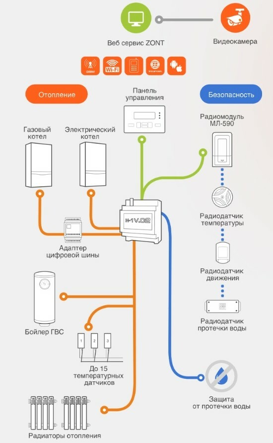 ZONT H-1V.02 в режиме 24/7 из любой точки мира обеспечивает: