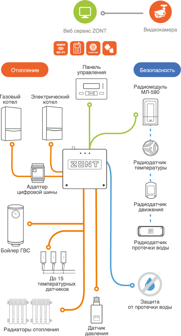 ZONT SMART 2.0 в режиме 24/7 из любой точки мира обеспечивает: